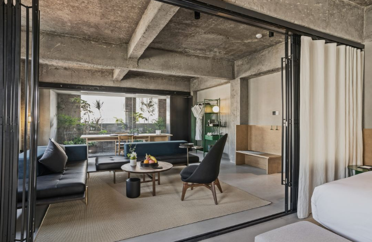 深圳南头古城有熊酒店位于集历史文化与现代创意于一体的南头古城中心区域。南头古城有熊酒店由屡获国际设计大奖的如恩设计研究室创始合伙人——郭锡恩与胡如珊亲自设计,以“城中村与繁华都市共存”为设计理念,延续南头古城的原生脉络,保留建筑原有的混凝土结构和部分使用痕迹,融入城市不间断的有机生长变化,赋予了旧建筑新的生命力。酒店的设计中保留了原有空间布局的同时,转换、重叠、模糊了室内与外部环境的界限,希望来访宾客在繁忙的都市生活中放慢脚步,与自己的内心发生深刻的联系,在简单中体会人生丰盛,获得寂静与平和。