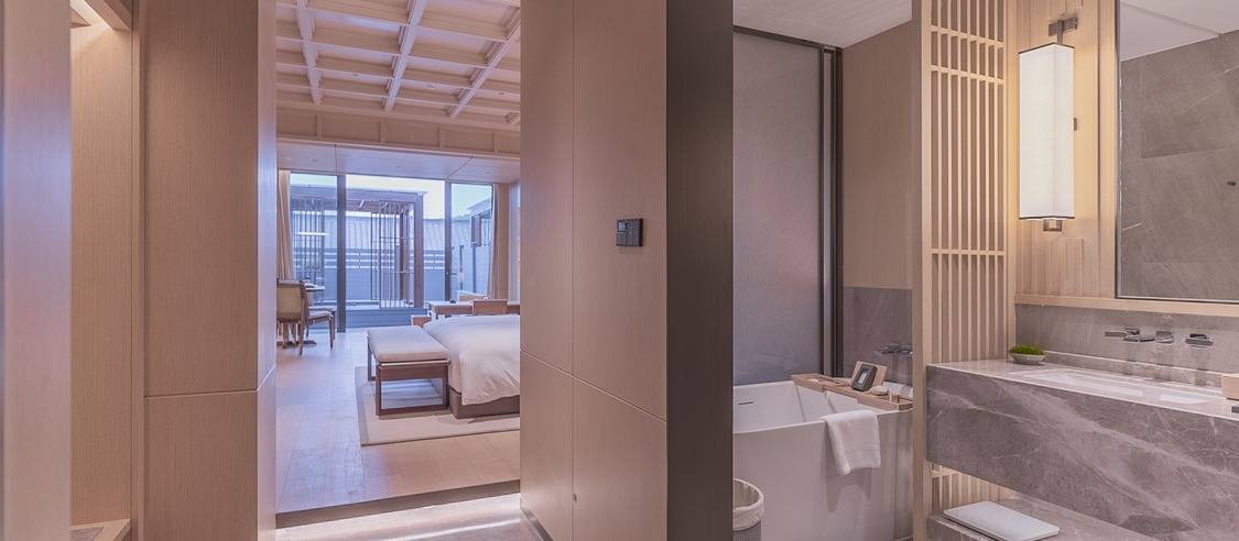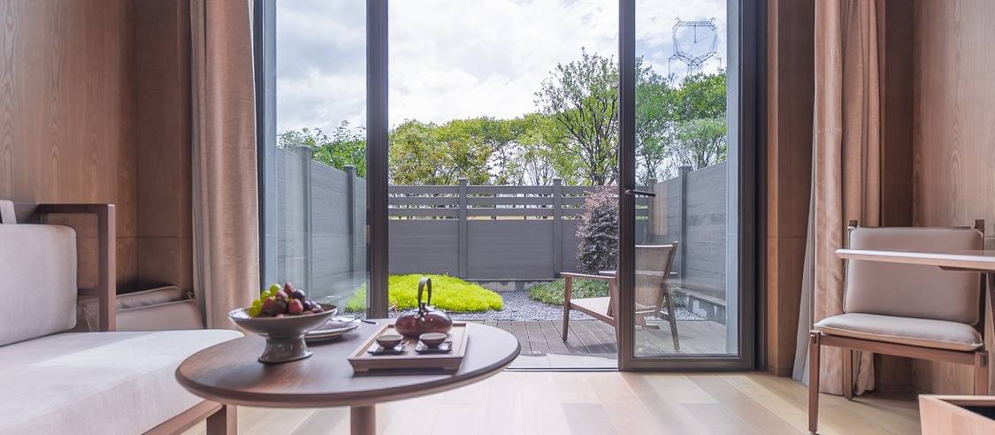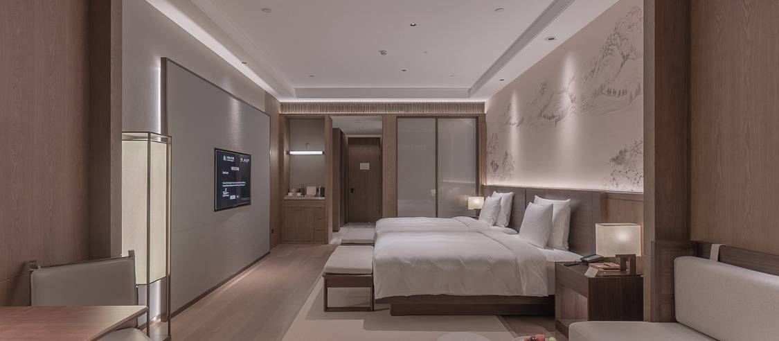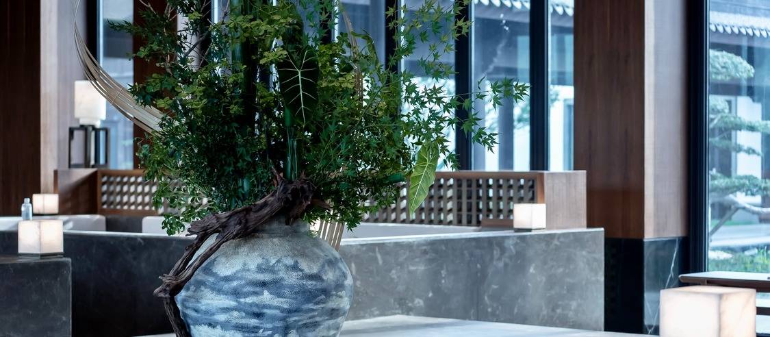 我们的灵感来源于东晋谢安 “托迹⼭⽔得真趣,放怀天外极⼤观”的描述,⽽东⼭为谢安隐居之地,也是谢安、王羲之雅聚之地域,因此择《兰亭集序》⾥“觀”字,为⼤觀核⼼,“觀”字右侧见字⾥⾯⼀点取⾃弘⼀法师李叔同《⼼经》⾸笔,意在传达大观品牌“本⼼住处”的初⼼,传递明⼼见性的意境。我们期待来此的每⼀位宾客,感受江南⽣活和款待⽂化的同时,观⼭、观⽔、亦观⼼。