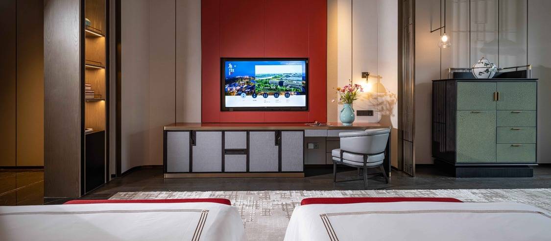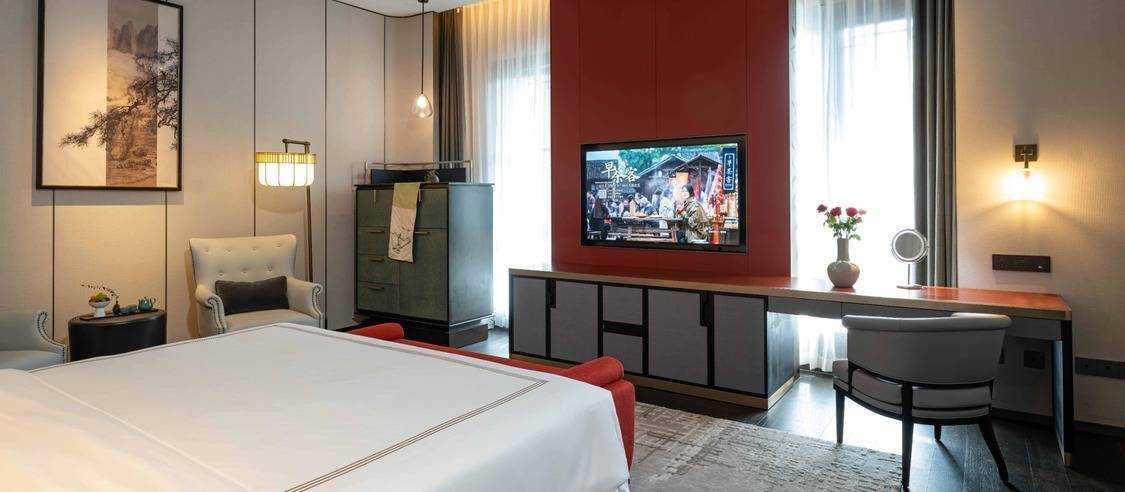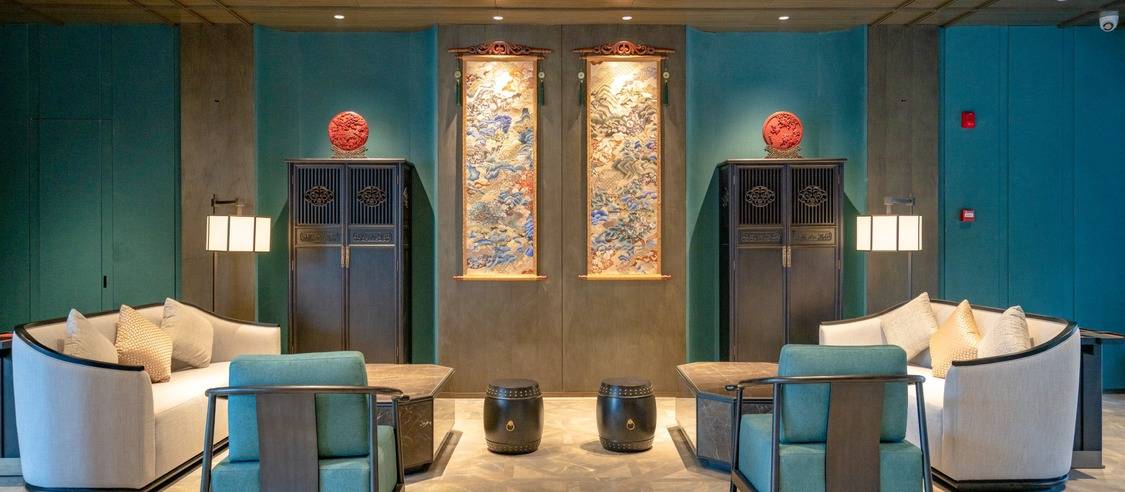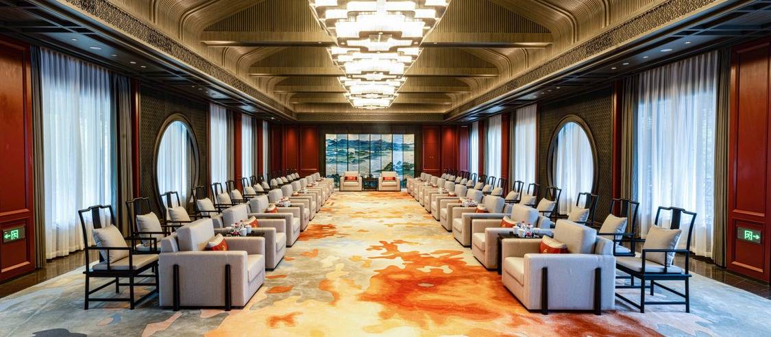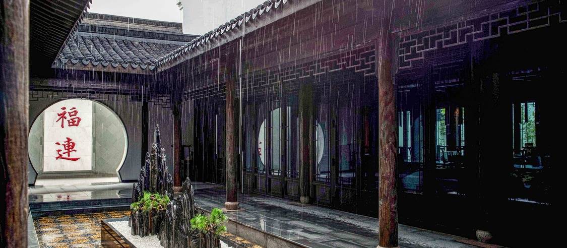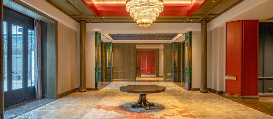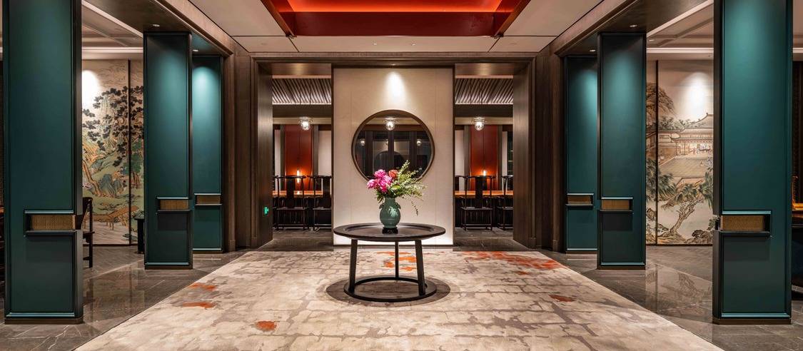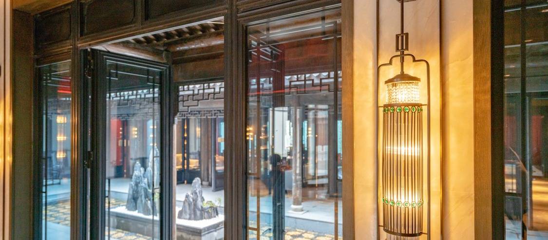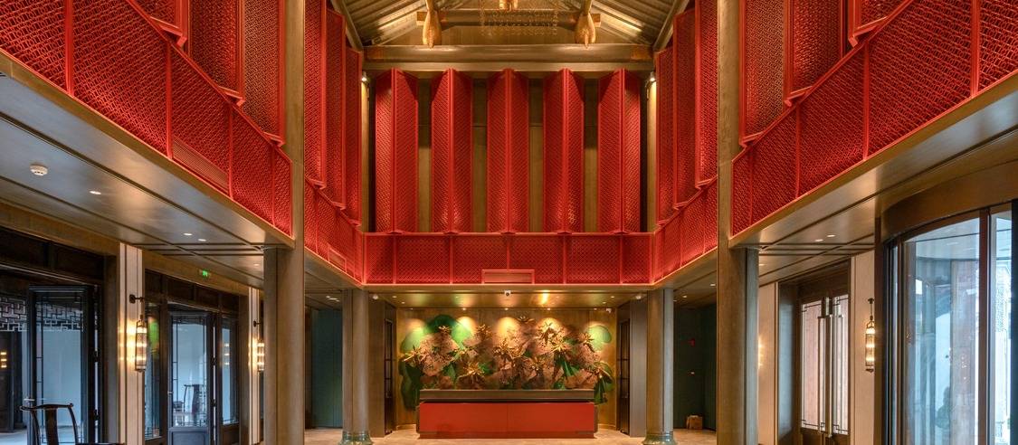 益大丝业会馆座落于乌镇西栅景区内,总建筑面积15209㎡,由一号楼、二号楼组成共三层,配置客房数33间、主题餐厅、豪华包厢、会议室及露天泳池、SPA等设施。是一家展示浙江丝业历史的小型博物馆酒店,以老厅、庭院民国风格作为装饰基调,并搭配乌锦、刺绣元素等诠释当地丝绸文化。落步民国建筑特色的酒店,进入彩衣楼,也是酒店的1号楼,两扇庄重大气的铜门极具西方礼仪感。进入大厅,民国时期的场景感引入眼帘,留声机、复古收音机、民国时期电话机......彩绘玻璃屏风矗立两旁,序列有度,礼敬尊客,感受盛世的迎宾仪式。空间上气势恢宏,色彩灵动。展现那个民国时期的东方与西方文化交汇的碰撞感,展现中华传统美与西方古典美。益初楼是丝业会馆的2号楼,益初楼的大堂,正统中式院落建筑的第一进“客厅”,室内采用“金包骨”的设计方法,保持原木构空间比例形态。大堂右侧的接待台背景是定制艺术品龙凤呈祥,寓意吉祥瑞庆;大堂休息区,以乌锦、木雕等艺术品营造氛围;中间采用端景造景,与顶面艺术花灯中轴呼应。二进为户外庭院,空间层层递进,在纵轴形成了三进的多层次的布局。益大丝业会馆拥有33间客房,大床房5间,标间26间,商务套房1套,总统套房1套。客房基调为浅色调,采用温暖质朴的浅灰色木饰面,整体色调柔和高雅,点缀局部剔红色营造空间色彩氛围,中西混搭的真皮家具、羊毛材质的地毯,编织材料……天然材料营造一个放松身心的栖居感受。寒衣堂茶室是供静谧交谈的私密会晤之所,内有书画室、休息区、大小茶桌,茶室案桌上摆放了精致的香炉、古书籍、以茶会友,沁茗清香,给人舒适悠闲的生活感受。天和厅餐厅餐厅彩绘玻璃屏风矗立两旁,序列有度,礼敬尊客,感受盛世的迎宾仪式。空间上气势恢宏,色彩灵动。展现那个民国时期的东方与西方文化交汇的碰撞感,展现中华传统美与西方古典美。宋锦厅宋锦厅宴会包厢,面积370㎡,是餐厅最大的包厢,以包厢、茶室、会客功能组成,可容纳18位用餐,包厢内含接待厅、茶室、自动餐桌。宴会厅别具匠心地添置了剔红色门板、绿色屏风,红绿相间、丰富的空间造型语言,天花吊灯以一种独特的形态凌驾于空中,放眼望去,仿佛有画栋飞帘的宫殿时空感康乐项目:益大丝业会馆康乐设有SPA、面积110㎡的露天泳池。为住宿客人提供休闲放松疗养之所。