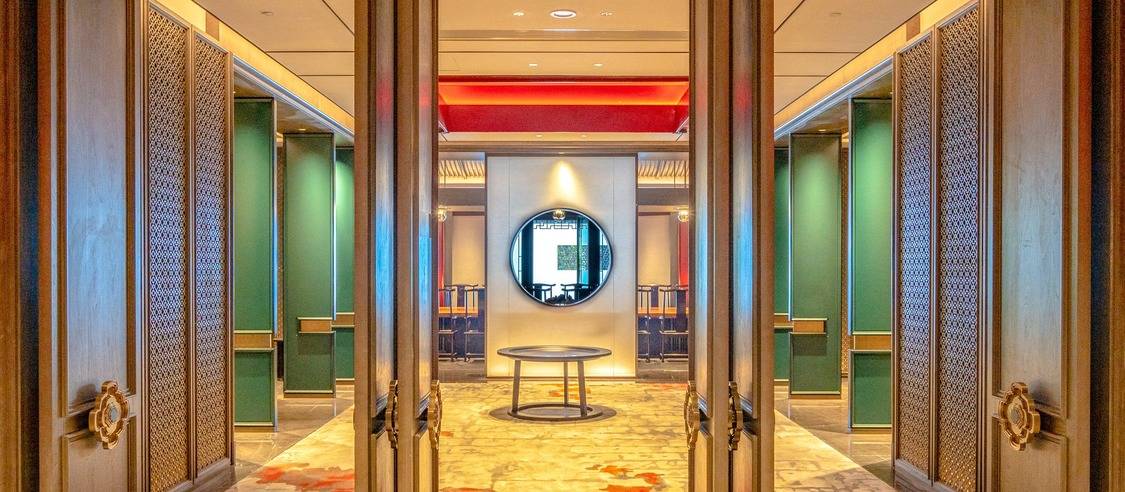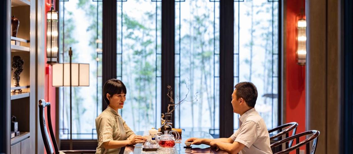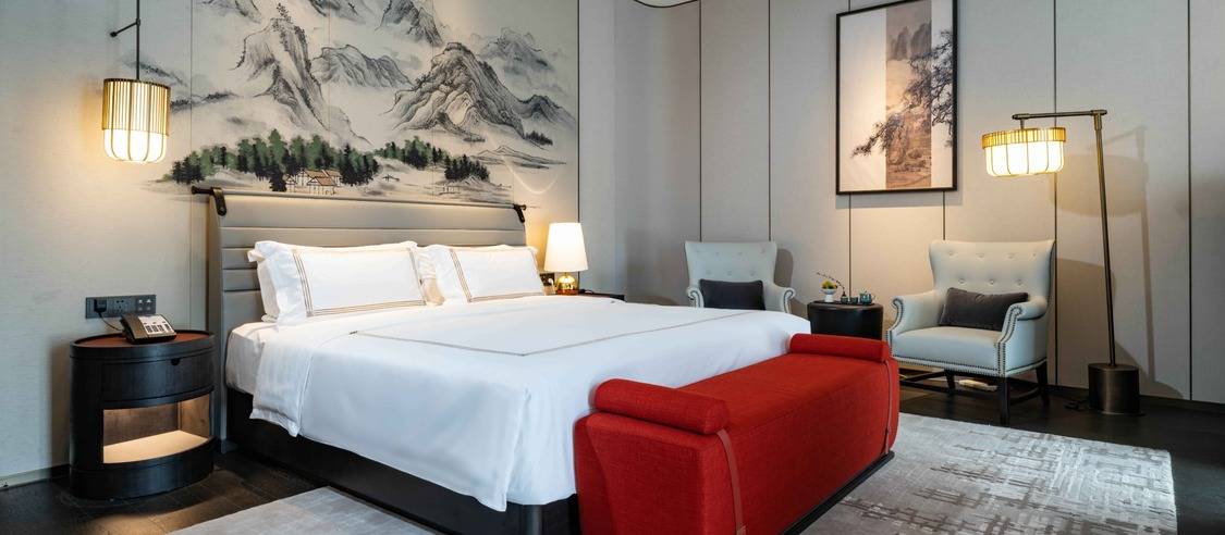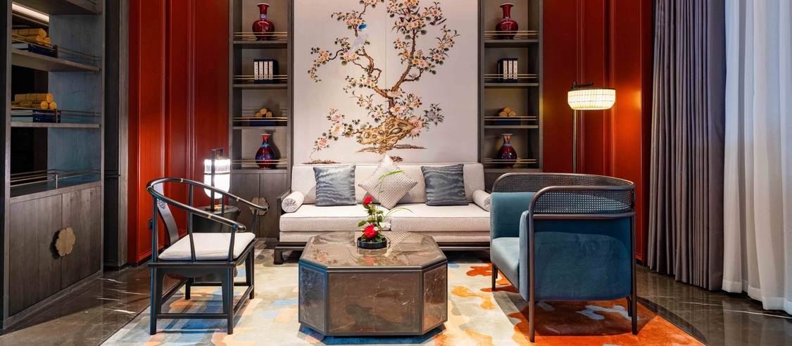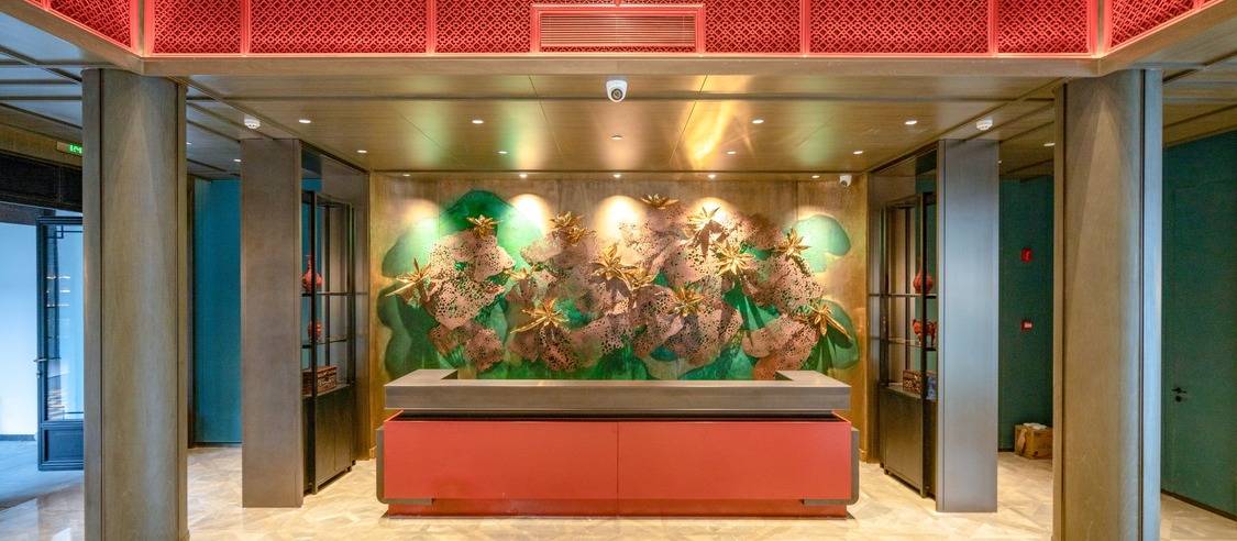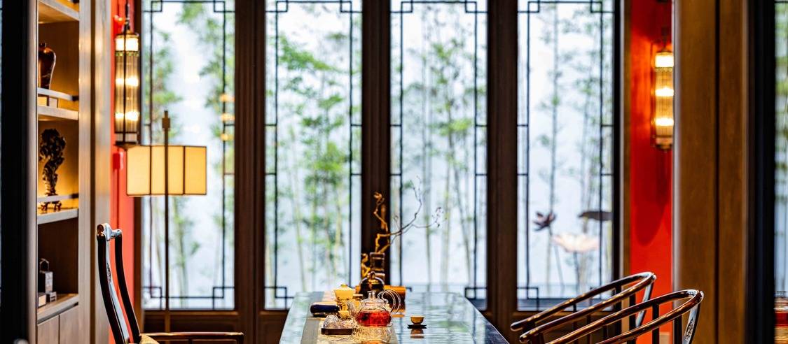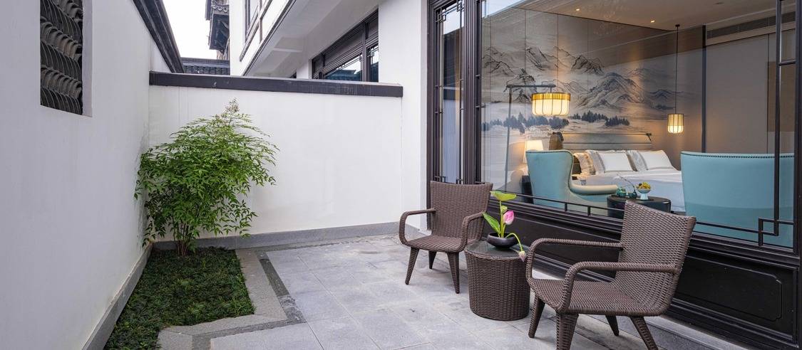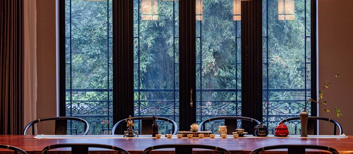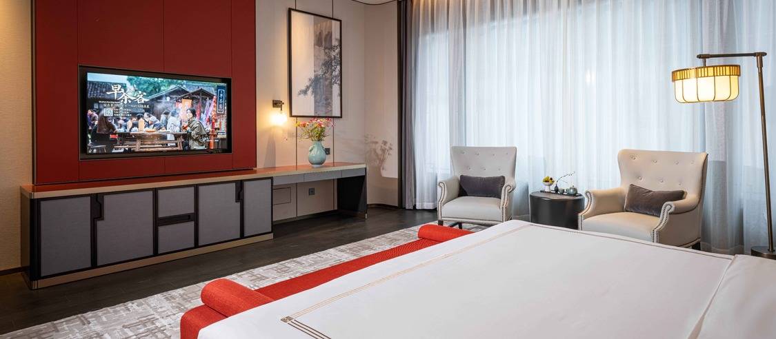 益大丝业会馆座落于乌镇西栅景区内,总建筑面积15209㎡,由一号楼、二号楼组成共三层,配置客房数33间、主题餐厅、豪华包厢、会议室及露天泳池、SPA等设施。是一家展示浙江丝业历史的小型博物馆酒店,以老厅、庭院民国风格作为装饰基调,并搭配乌锦、刺绣元素等诠释当地丝绸文化。落步民国建筑特色的酒店,进入彩衣楼,也是酒店的1号楼,两扇庄重大气的铜门极具西方礼仪感。进入大厅,民国时期的场景感引入眼帘,留声机、复古收音机、民国时期电话机......彩绘玻璃屏风矗立两旁,序列有度,礼敬尊客,感受盛世的迎宾仪式。空间上气势恢宏,色彩灵动。展现那个民国时期的东方与西方文化交汇的碰撞感,展现中华传统美与西方古典美。益初楼是丝业会馆的2号楼,益初楼的大堂,正统中式院落建筑的第一进“客厅”,室内采用“金包骨”的设计方法,保持原木构空间比例形态。大堂右侧的接待台背景是定制艺术品龙凤呈祥,寓意吉祥瑞庆;大堂休息区,以乌锦、木雕等艺术品营造氛围;中间采用端景造景,与顶面艺术花灯中轴呼应。二进为户外庭院,空间层层递进,在纵轴形成了三进的多层次的布局。益大丝业会馆拥有33间客房,大床房5间,标间26间,商务套房1套,总统套房1套。客房基调为浅色调,采用温暖质朴的浅灰色木饰面,整体色调柔和高雅,点缀局部剔红色营造空间色彩氛围,中西混搭的真皮家具、羊毛材质的地毯,编织材料……天然材料营造一个放松身心的栖居感受。寒衣堂茶室是供静谧交谈的私密会晤之所,内有书画室、休息区、大小茶桌,茶室案桌上摆放了精致的香炉、古书籍、以茶会友,沁茗清香,给人舒适悠闲的生活感受。天和厅餐厅餐厅彩绘玻璃屏风矗立两旁,序列有度,礼敬尊客,感受盛世的迎宾仪式。空间上气势恢宏,色彩灵动。展现那个民国时期的东方与西方文化交汇的碰撞感,展现中华传统美与西方古典美。宋锦厅宋锦厅宴会包厢,面积370㎡,是餐厅最大的包厢,以包厢、茶室、会客功能组成,可容纳18位用餐,包厢内含接待厅、茶室、自动餐桌。宴会厅别具匠心地添置了剔红色门板、绿色屏风,红绿相间、丰富的空间造型语言,天花吊灯以一种独特的形态凌驾于空中,放眼望去,仿佛有画栋飞帘的宫殿时空感康乐项目:益大丝业会馆康乐设有SPA、面积110㎡的露天泳池。为住宿客人提供休闲放松疗养之所。