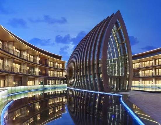 全新品牌「悦柳」于千年“丝绸之源”潞村首度亮相 以自然休闲返璞归真的主张,邀你一起寻觅悠悠古韵,体验富有“当地感”的非凡旅行 作为悦柳品牌全球首家酒店,酒店坐落于湖州市吴兴区美丽的水乡千年古村落潞村,毗邻“世界丝绸之源”钱山漾遗址,建筑如蚕茧般安卧于湿地一隅,周围绿树掩映水系丰沛,诠释了悦柳品牌自然休闲返璞归真的主张。 湖州潞村悦柳酒店建筑设计形似蚕茧,由空中俯瞰亦如象征融合的莫比乌斯环,置身其中又仿若潜入福建土楼。107间房间,含77间客房、19间亲子房及11间套房,面积38平方米起,均配有阳台或巨幅落地玻璃窗,将盎然生机由户外引入客房。房内设计简约精致,原木色与米棕色柔和交织,木饰墙面、原木地板与桑叶纹地毯勾勒出自然肌理。其中,130平方米的丝源套房更包含独立的客厅、贯穿式阳台、步入式衣帽间等精巧设计。此外,酒店亦为行动障碍人士专设便利舒适的关爱房型。悦青全日制餐厅荟萃中西美食,更以亚洲美食及江浙特色为亮点;五间中餐厅包厢设计雅致,落地玻璃窗将湿地花海风光尽收眼底。酒墙高耸的酒吧为宾客们奉上轻松惬意的欢乐时光;大堂旁静谧一隅的汇友巢则是宾客们聊天休憩的上佳之选。作为世界乡村旅游大会永久会址,湖州潞村悦柳酒店特设超大型会议中心,包含两个1,400平米多功能会议厅,不仅是举办大型宴会的理想场所,可被划分成不同规格的多个会议厅更可满足各种规模的宴会需求。酒店大堂的礼堂型格局与中庭的自然休憩空间亦是目的地婚礼的理想之选。让自己沉浸在千年古村的文化、自然和历史中,参观历史地标,探索古村落,发现惊艳的自然生态奇观。