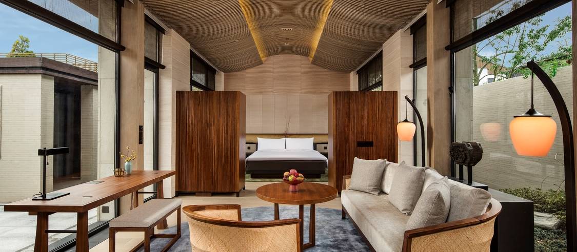 朱家角安麓是安麓在中国开幕的第一家度假酒店,由国宝级古建匠人、马来西亚建筑及室内设计师冯智君先生与澳大利亚灯光设计团队The Flaming Beacon设计。酒店选址在全国历史名镇之一、早在1700多年前就已形成村落的上海朱家角,此地素有“上海威尼斯”及“沪郊好莱坞”的美誉。酒店以六百年历史的明代“江南第一官厅”五凤楼及晚清戏台为核心,包括35间联排别墅式客房,融合地方特色的全日餐厅、私享包厢、小食吧、图书馆、太极馆、中药坊、水疗及会议活动设施。