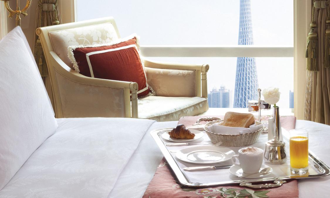 广州富力丽思卡尔顿酒店将中西文化和谐融合,致力于为宾客提供体贴入微的个性化服务,让宾客充分体验典雅奢华。我们以传统的欢迎仪式,为来自全球各地的宾客们递上一杯热茶。宾客在优雅的洛可可风格大堂里品尝着中国茶,欣赏着极富禅意的流动喷泉,尽享诗意。入住酒店客房后,五星享受无处不在。提花窗帘缓缓升起,新广州景观一览无遗。无论是休闲旅游还是从事商务,如广交会的客人都将十分享受眼前这一新城市景象。酒店毗邻广州歌剧院、广东博物馆等地标建筑,紧靠交通枢纽,与广州国际会议及展览中心隔江相望。酒店设计独显经典欧陆风情,是珠江边上最璀璨的明珠。