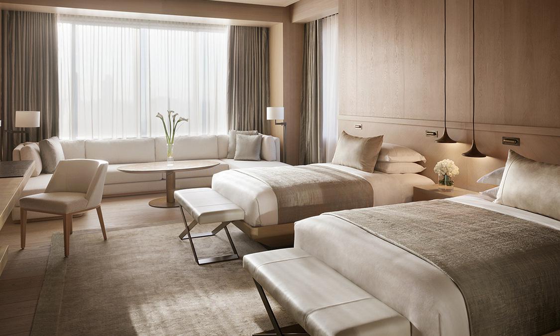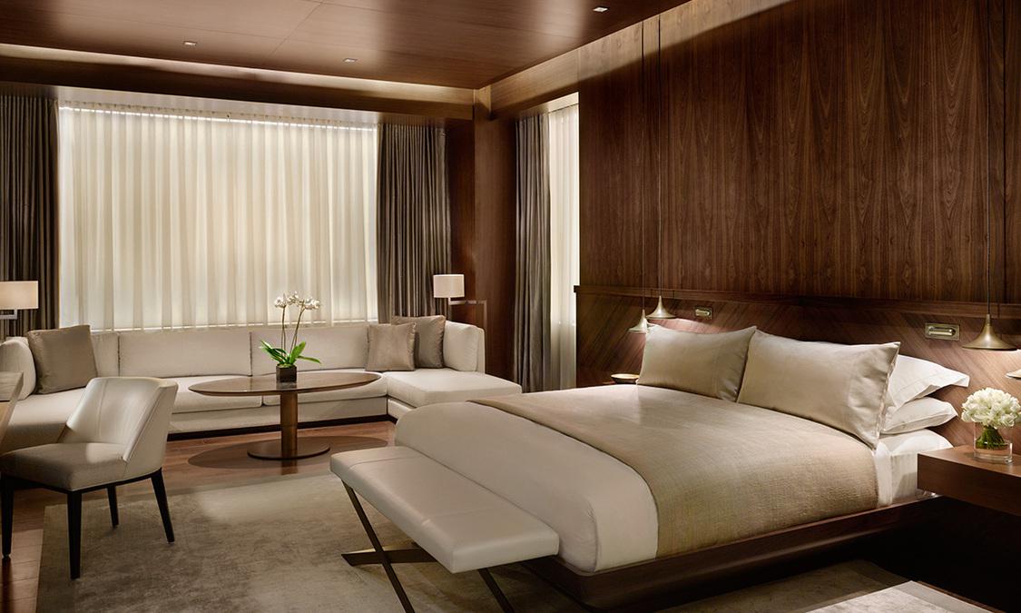 宽敞的客房铺有花梨木或橡木镶板,配有Frette品牌的优质床单以及带玻璃淋浴间、花洒淋浴喷头和Le Labo品牌的洗浴用品的大理石浴室。每间客房均配有一台可收看全套有线频道、高清频道和点播电影的42英寸Bang&Olufsen液晶电视。