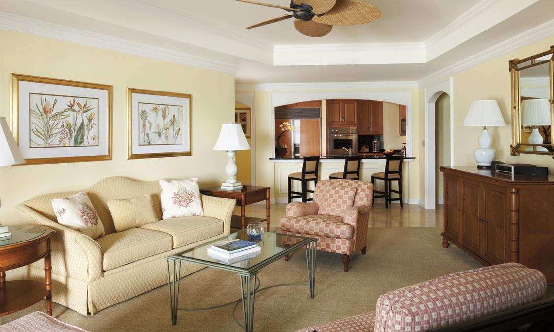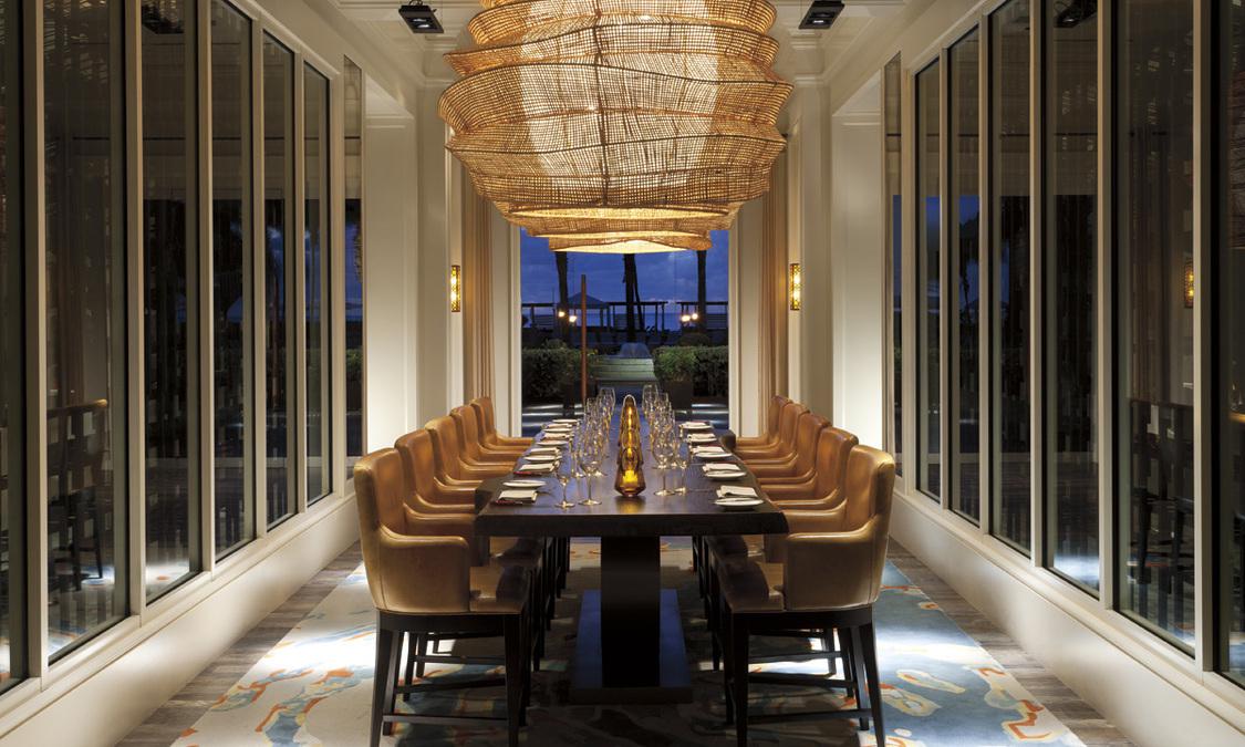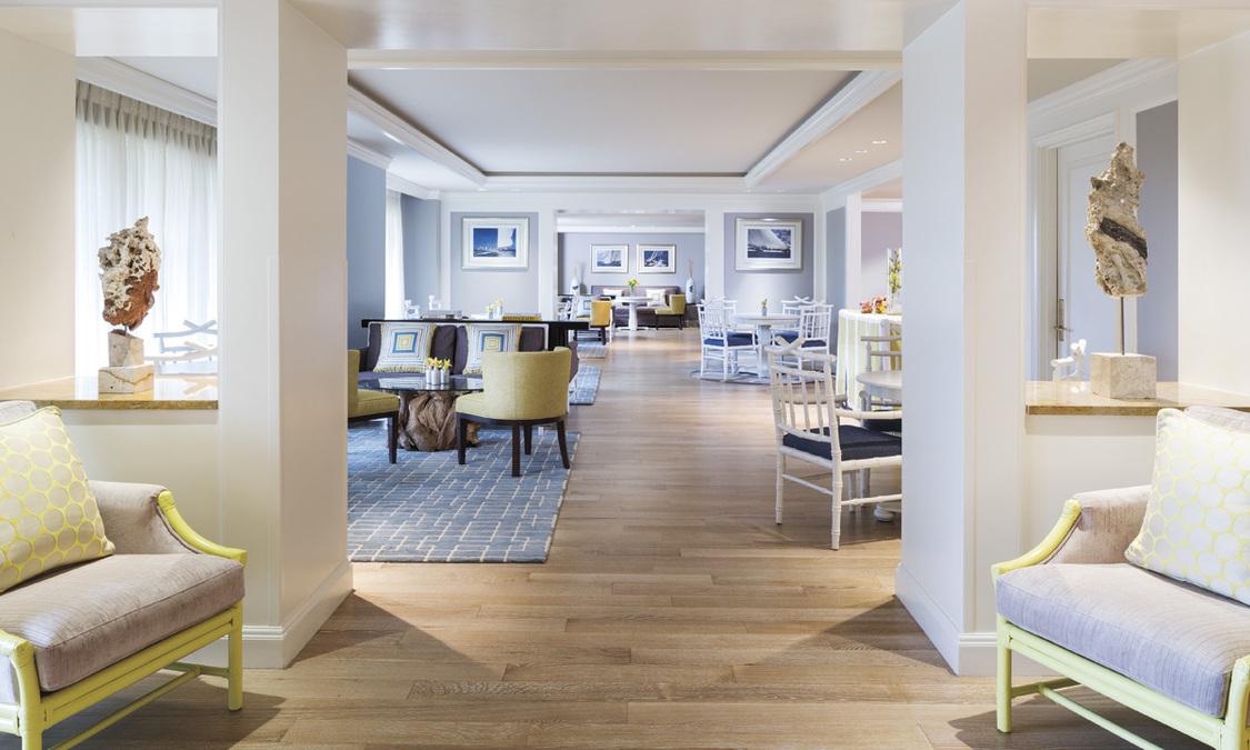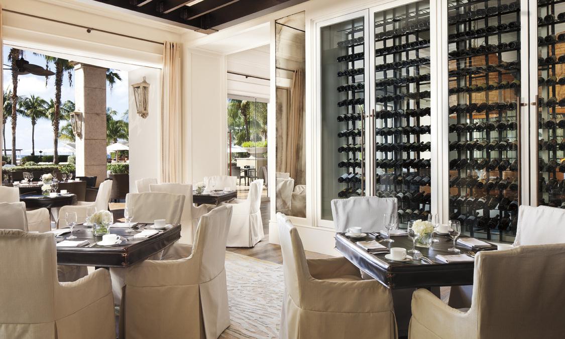 五家餐厅,其中有两家是由名厨 Eric Ripert 经营的法式海鲜餐厅 Le Bernadin,是纽约首屈一指的顶级餐厅行政商务中心超过 13,000 平方英尺的会议场所,包括一间 9,000 平方英尺的舞厅无线上网,信号覆盖所有公共区域(需额外付费)两处室外游泳池,一处位于海滨,一处朝向北海湾海滨户外按摩浴珍妮·米歇尔·库斯特倡导的环保儿童计划的代表蓝色山麓,由格雷格·诺曼设计的九洞高尔夫场地银色雨水,20,000 平方英尺的拥有 17 间理疗室的水疗中心由世界著名网球教练尼克·博雷蒂里设计的网球中心蒂凡尼专卖店,经营精致珠宝和手表
