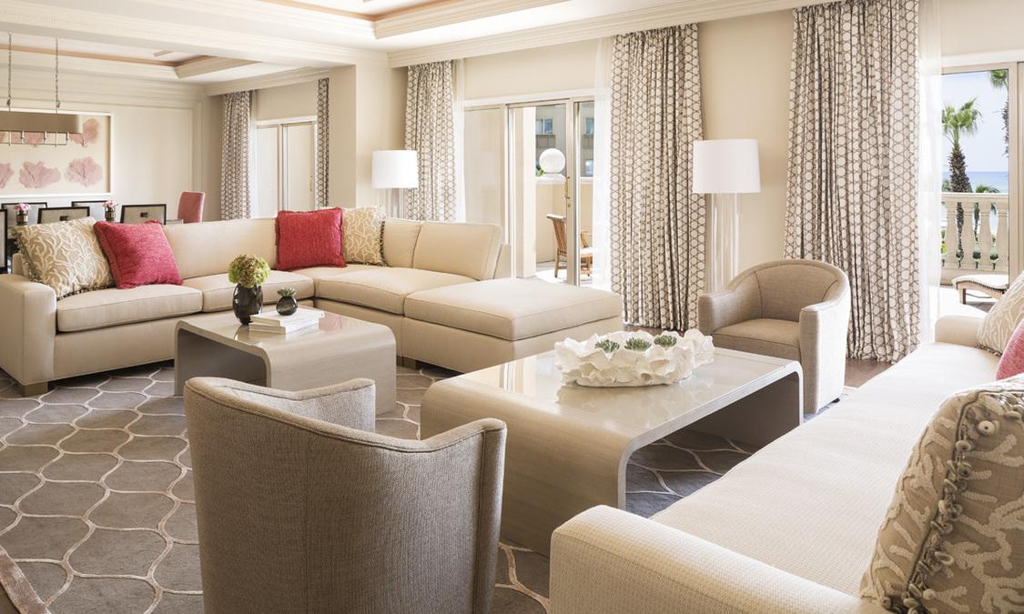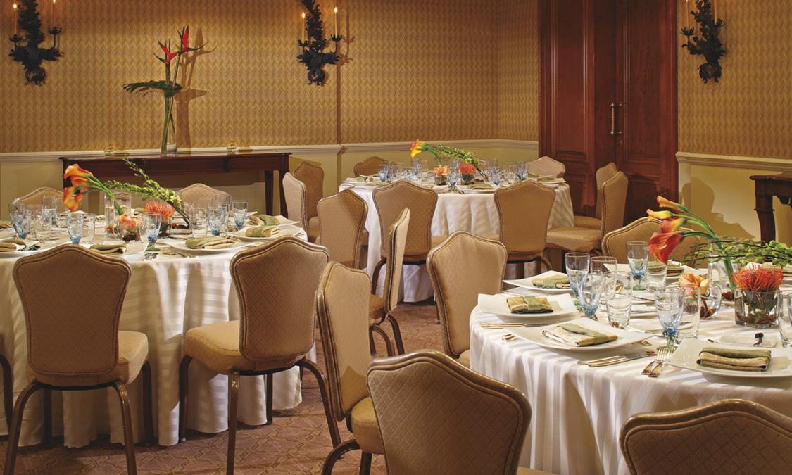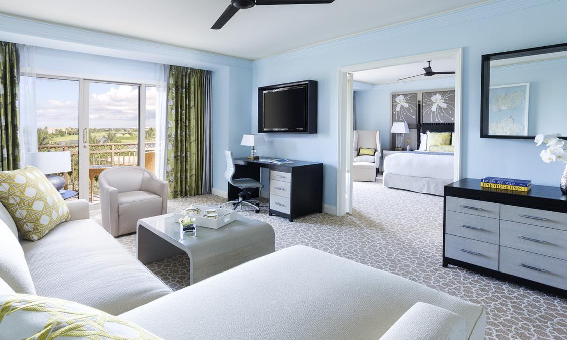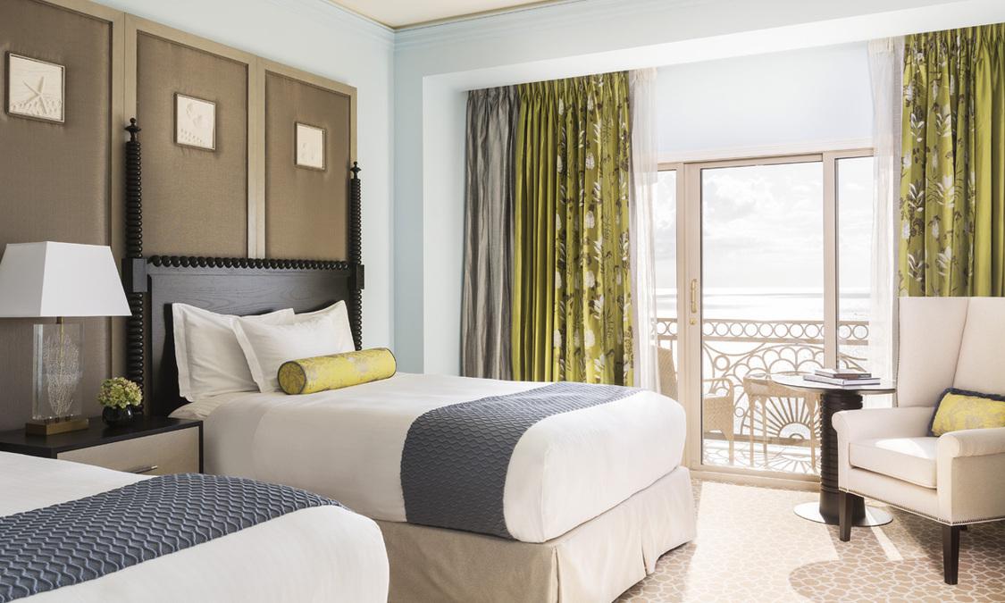 五家餐厅,其中有两家是由名厨 Eric Ripert 经营的法式海鲜餐厅 Le Bernadin,是纽约首屈一指的顶级餐厅行政商务中心超过 13,000 平方英尺的会议场所,包括一间 9,000 平方英尺的舞厅无线上网,信号覆盖所有公共区域(需额外付费)两处室外游泳池,一处位于海滨,一处朝向北海湾海滨户外按摩浴珍妮·米歇尔·库斯特倡导的环保儿童计划的代表蓝色山麓,由格雷格·诺曼设计的九洞高尔夫场地银色雨水,20,000 平方英尺的拥有 17 间理疗室的水疗中心由世界著名网球教练尼克·博雷蒂里设计的网球中心蒂凡尼专卖店,经营精致珠宝和手表