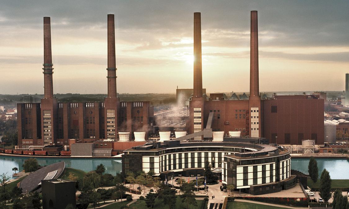 大众汽车工厂或汽车城风光以及米特尔兰运河水景