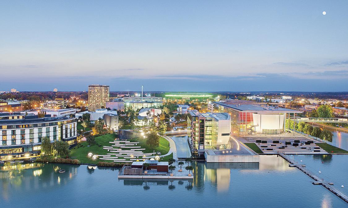 当您身处对德国科技顶礼膜拜的人群之中时,不由地会想起沃尔夫斯堡的格言“快乐从发现中来”。沃尔夫斯堡丽思卡尔顿酒店是大众汽车城主题乐园的一个组成部分,恰好与阿勒尔河对面设计大胆、新颖的斐诺科技中心遥相对望。酒店本身是一个引人注目的半圆形大建筑物,它的出现更加突显了周围建筑的未来派美感。