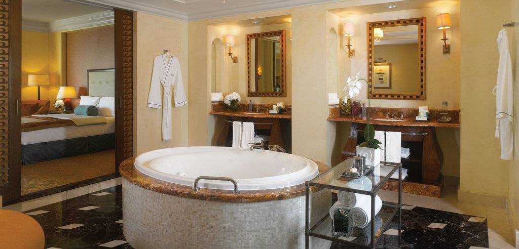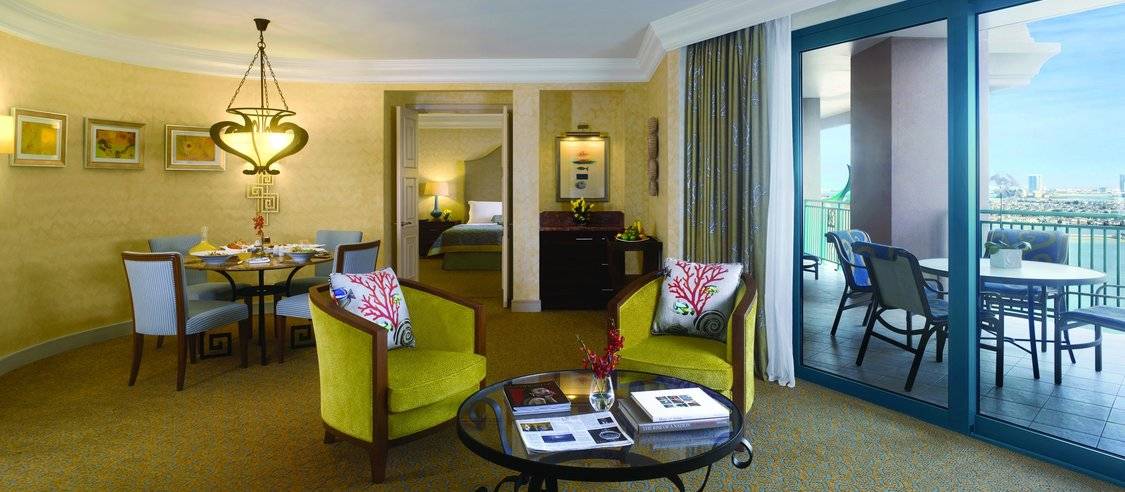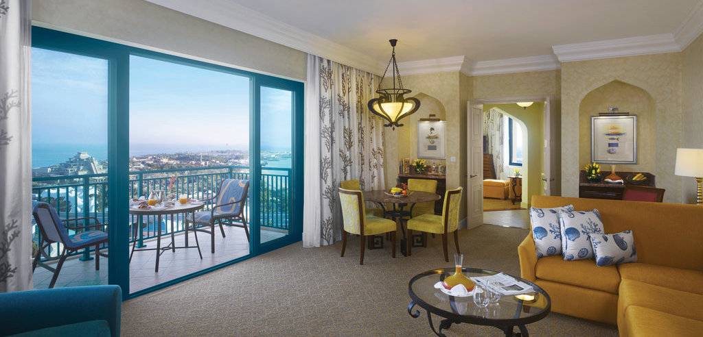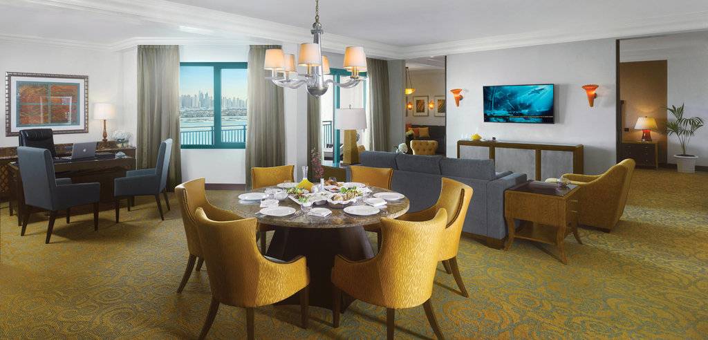 酒店坐落于迪拜市的棕榈岛上,坐落在其长800米的私人海滩区,并享有阿拉伯湾( Arabian Gulf)的壮丽景色。酒店拥有海底水族馆和广阔的水上乐园,亦为宾客提供了与海豚一起游泳的机会。所有客人居住的房间均拥有阿拉伯风格的装潢,并配备了大床、可观赏城市或阿拉伯湾全景的阳台以及一台平面卫星电视。酒店拥有供应地中海菜肴、意大利餐点和法国料理的多间美食餐厅。屡获殊荣的 Nobu餐厅还可提供当代特色的日本料理。酒店拥有一座水底迷宫以及中东地区最大的水上乐园,并且水上乐园内还配备几乎垂直的滑梯和数条激流水道。宽大的游泳池四周还环绕着棕榈树林和躺椅。配套完善的 Spa中心提供脸部和身体护理服务。健身房还可提供私人健身教练服务。酒店相距 Emirates Golf Club高尔夫球俱乐部有3公里,相距 The Dubai Mall购物中心有20分钟的车程。