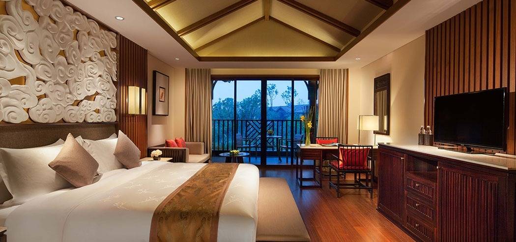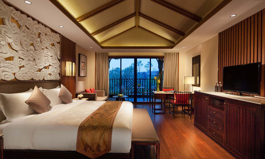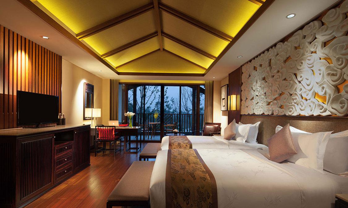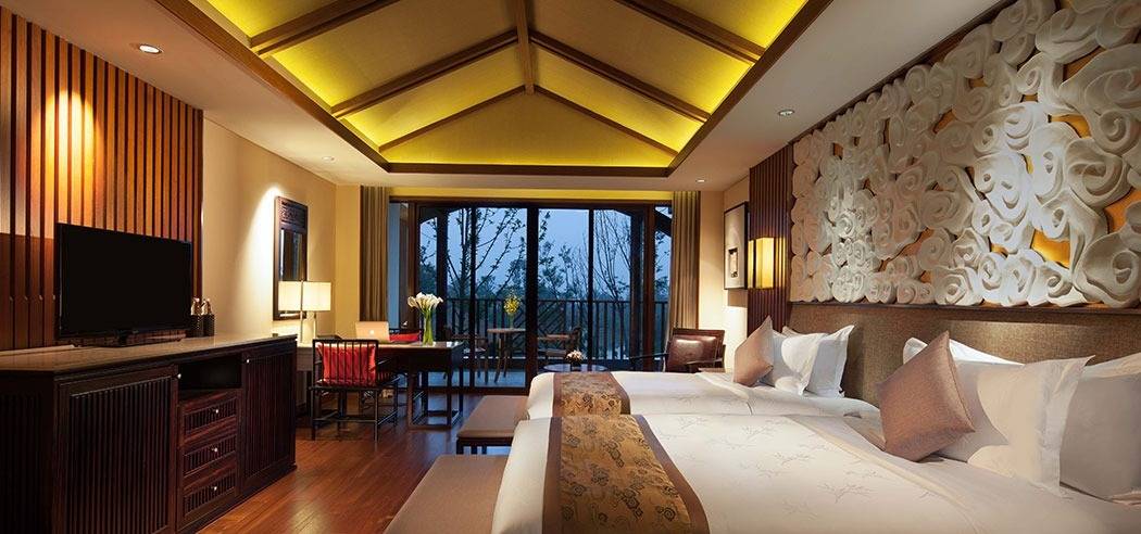 峨眉山蓝光己庄酒店,都市人的一处心之属地。其坐落在融秀美风光与禅意文化于一身的峨眉山脚,是“天府之国”四川省内的峨眉山市的一家五星级豪华度假酒店。 峨眉山蓝光己庄酒店,坐拥山岚美景,融汇道法自然。酒店周边风景怡人,目之所及皆为美景,将为自都市风尘仆仆而来的您,带来身心愉悦的初体验。置身酒店之中,如同抵达憧憬中的心之属地,彻底放松,拥抱无尽惬意之享。 150间豪华客房及豪华别墅,每一间都自有其独特的住享体验与风景相伴。本土化的川西部落风格,融合典雅新中式审美,为您的旅行,赋予身心双重享受。