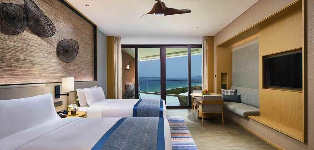 三亚海棠湾仁恒皇冠假日度假酒店新颖别致、雄伟壮观的设计,犹如一艘巨型豪华游轮驶进美丽的海棠湾,与碧海、远山、椰林融为一体,交相辉映。旖旎的风光、完善的度假与商务设施以及卓越的国际品牌服务,三亚海棠湾仁恒皇冠假日度假酒店为您家庭度假、商务休闲扬起风帆,邀您踏上心动旅程。房型信息 ROOM INFORMATION405 间客房,包括206间双人客房及间套房,精心雕琢的空间设计令所有房间都能观海聆涛。餐饮信息 RESTAURANTS & BARS7间餐厅与酒吧,风格迥异,特色十足专供惊艳的创意美食。趣CHEW CHEW•儿童餐厅•每日儿童烹饪课程•特色儿童套餐•可容纳52客位•营业时间:08:00-21:00•零点时间:11:30-21:00彩丰楼 CAIFENGLOU•3个包厢•茶文化•粤菜及海南菜•可容纳92客位(54位室内+38位包厢)•营业时间:•午餐:11:30-14:30•晚餐:17:30-22:00味SPICES•东南亚菜及中式佳肴•开放式厨房,现场烹饪•每日乐队互动表演可容纳420客位营业时间:07:00-11:00早餐自助餐时间:7:00-11:00晚餐自助餐时间:17:30-21:30大堂吧 BREEZE BAR•中外名酒•特色精美小食•家庭份分享下午茶•特色鸡尾酒及欢乐时光可容纳105客位营业时间:11:00-23:00餐吧270° Restaurant& Bar•顶楼海景多功能餐吧•无敌海景•烧烤自助晚餐•现场乐队表演可容纳132客位营业时间:11:30-22:00自助晚餐时间:17:30-21:30咖啡道 COFFEE CAVE•提供新鲜出炉的曲奇饼干、巧克力、面包、蛋糕、咖啡、鲜榨果汁和软饮•海南本地的特色产品,如:海南自制黄灯笼辣椒酱、椰汁糖等营业时间:09:00-20:30怡 ZEN•优雅的茶文化环境•提供丰富的中国茶选择•搭配具有本地特色的美味点心•茶艺师现场表演可容纳40客位营业时间:11:30-22:00康乐休闲 RECREATIONS酒店的康乐休闲设施让您在优美怡人的热带风情中尽享度假美好时光。•儿童俱乐部•泳池•健身房•水疗中心儿童俱乐部 KIDS CLUB儿童俱乐部位于酒店1楼,为儿童提供丰富的娱乐、益智设备设施。我们将提供热情友好的服务,带着寓教于乐的理念让小朋友们欢享度假玩乐时光。营业时间:09:00-21:00奇林幻境 WONDERLAND奇林幻境以热带雨林为设计灵感,引导小朋友以探险的精神去探索其中的丛林奥秘。石头堆砌的林间小路、长相奇特的巨树、各种奇花异果、生动的丛林小动物造型、原始丛林风格的巨大鸟笼,令小朋友们沉浸在一场如梦幻般的丛林探险体验中。营业时间:08:00-21:00泳池 POOLS酒店设有个户外泳池以及1个位于顶楼的270°泳池(恒温),您可以在池畔饱览美景,亦可畅游其中,释放无限活力。为满足不同住客的需求,户外泳池特设:儿童池、标准池、水疗池、无边际泳池。健身房 GYMNASIUM健身房位于酒店15楼,全天面向宾客开放。齐全完备的健身及锻炼器材,让您在旅途之中依旧保持活力体魄。全海景设计让您在运动健身的同时将醉人的海洋风光尽收眼底。水疗中心SPA水疗中心位于酒店5楼,具备7间风格典雅的理疗室,包括4间双人理疗室和3间单人理疗室,让您在快节奏的工作生活之余放松心情、通经活络,享受祥和静好的私密时光。